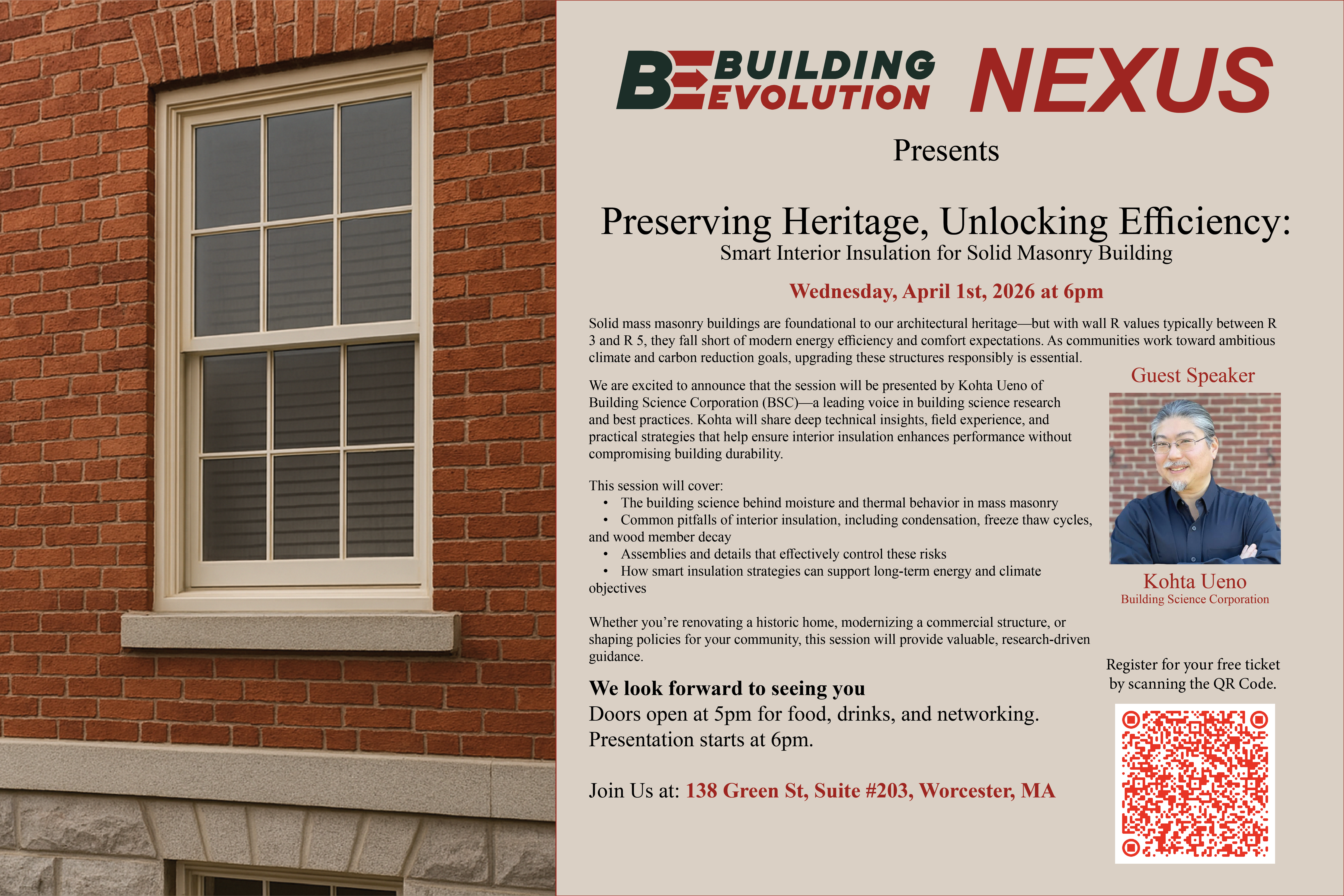 We are excited to announce that the session will be presented by Kohta Ueno of Building Science Corporation (BSC)—a leading voice in building science research and best practices. Kohta will share deep technical insights, field experience, and practical strategies that help ensure interior insulation enhances performance without compromising building durability.